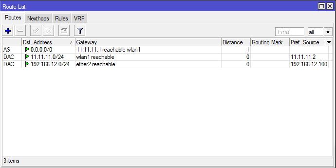 7. Buat IP Route, arahkan destination address ke IP AP dengan gateway IP wlan.